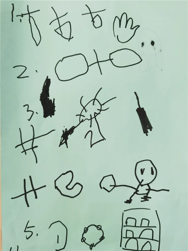 做木工最担心的就是孩子使用工具时会受伤,毕竟这些工具都是“利器”。为此教师引导孩子们一起商讨进区的约定。首先师幼一同分别围绕 :“什么是约定?”“ 做木工活动时要注意什么?”展开讨论,小朋友们纷纷说道:“约定就是和好朋友约定好一个时间,一起去做一件事情。约定就是一起制定规则,我们都要遵守。”“做木工活动时先戴好护目镜,戴好手套要保护自己不受伤”紧接着教师鼓励幼儿用画笔将自己的约定绘画出来与小朋友们一起分享。