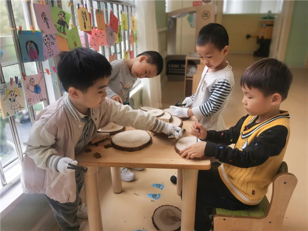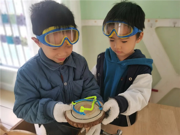 始于兴趣,忠于过程。木工坊的成立,正是为孩子们开辟了一个集游戏、手工操作为一体的专业活动场所。把大自然赋予的天然材料带入课堂,我们的木工活动还在继续,木工课程的思考和探讨也在继续:可以提供哪些材料供幼儿深入操作?幼儿还能学习哪些木工技能?制作哪些作品?……相信随着不断的探索和实践,木工活动会持续深入,幼儿的收获也会更多。期待下一次的精彩吧!