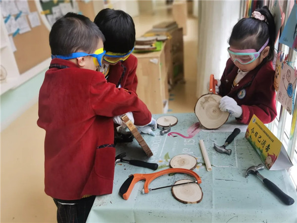 木工是一种传统工艺,也是中华民族“工匠精神”的延续。著名教育家陶行知先生提出要“解放孩子的双手”,他认为动手是动脑、好奇、好学、好创造的表现。培养孩子的动手操作能力、会使孩子的思维更灵活、更富有创造力,孩子的聪明才智是在实践中形成和发展的。