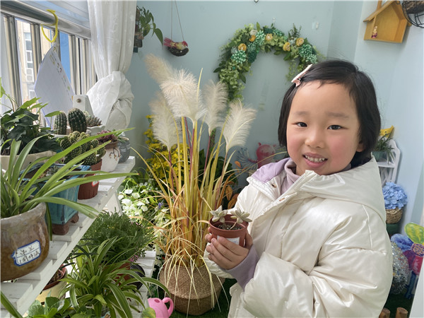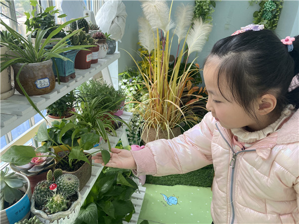 植物区也是活着的环境,是孩子刚刚接触世界的一部关于植物的小百科全书,孩子能在这里观察到各种不同颜色、形状的花朵和了解到不同种类的植物。通过对小绿植的养护,也能让幼儿体会到呵护照顾的快乐,以及劳动带来的收获。