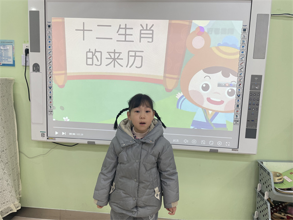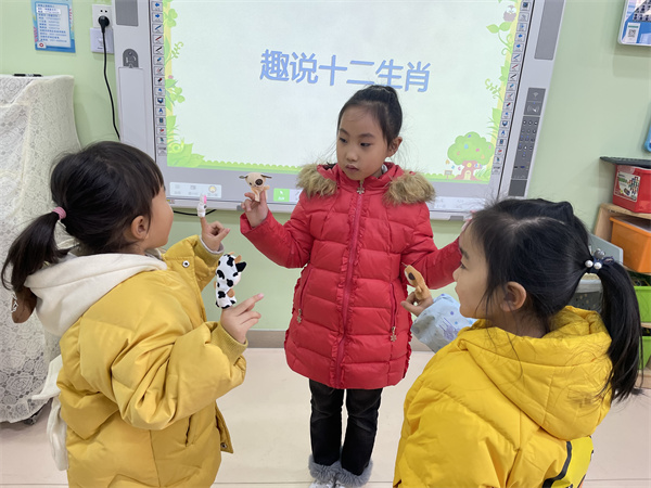 为了帮助孩子们解决一共有多少属相以及有哪些的问题,班级教师利用多媒体课件,通过短视频和韵律游戏,陪伴孩子们了解关于十二生肖的传说故事,孩子们知道了十二生肖的排列顺序,发现了十二生肖每十二年一轮回,通过儿歌和童谣、律动的联唱,激发幼儿对中华民族传统文化的喜爱之情。