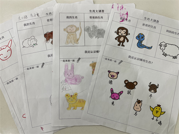 在了解了十二生肖的来历以及班级小朋友的属相后,那身边其他人的属相是什么呢?带着好奇,我们又开始了新一轮的探索,调查家人们的生肖。孩子们认真记录了自己的调查结果,还把调查的结果分享给了旁边的小朋友听。