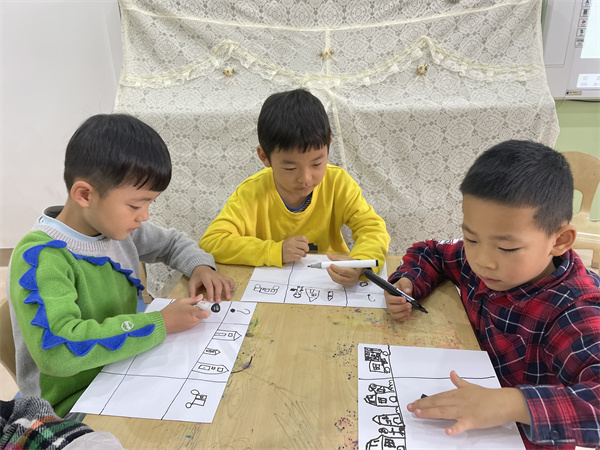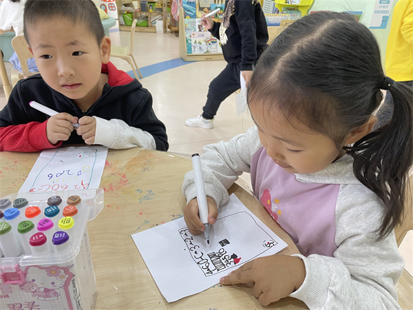 有了第一次的外送快递体验,孩子们对于外出送快递跃跃欲试,借着小厨房活动的契机,教师邀请快递员睿睿给大三班和大四班的老师送去面粉。时间一分一秒过去,睿睿还未返回班级,教师外出查看,原来是睿睿不认识大三班和大四班的位置,抱着面粉在外面徘徊。睿睿回班后,教师与幼儿就快递员怎样才能快速地将包裹送到顾客手上展开讨论,得出结论要熟悉幼儿园每个地方的具体位置,于是孩子们用自己的方式记录班级的名称和位置,动手绘制幼儿园的外送地图,并按照自己绘制的地图进行考察检验,将思考融入实践。