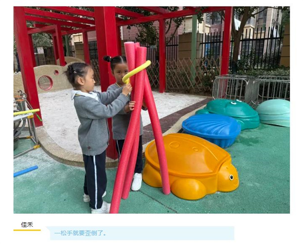 教师思考: 幼儿在一次又一次尝试搭建帐篷的过程中,进行了深度学习,在深度探究对现有的材料利用,了解帐篷的结构并探寻帐篷的稳固的同时逐渐掌握了搭建帐篷的技巧,同时发展了幼儿的建构技能、动手操作能力,幼儿学习品质、专注力、学习主动性、克服困难以及同伴合作交往能力也得到了进一步的提升。