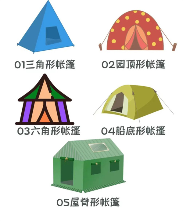 通过查阅资料,小朋友们发现,帐篷主要分为三角帐篷、圆顶形帐篷还有其他形状的帐篷。
