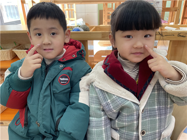 孩子们发现不仅男女生不同,每个小朋友也不同,每个人都有眼睛、耳朵、鼻子、嘴巴、眉毛,但眼睛的大小、鼻子的高低,嘴唇的厚薄等等,这些不同的特征,构成了独一无二的自己。