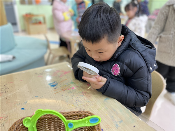 幼儿发现人体的指纹也是和别人不同的,为了更清楚的观察指纹,于是,孩子们用到放大镜来观察。指纹的作用可大啦!不仅可以创做出漂亮的指纹画还可以帮助我们解锁!每个人的指纹都不一样,指纹可以协助警察破案也可以快速开锁为我们生活带来了方便。
