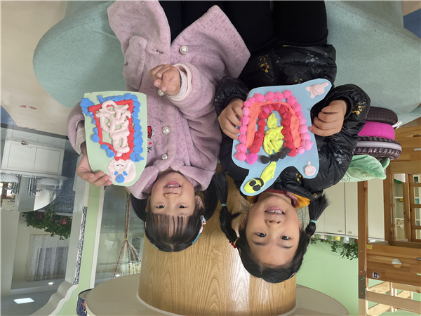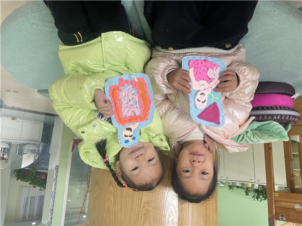 基于幼儿对绘本内容非常感兴趣,对肠胃运作非常感兴趣,接着老师围绕我的肠胃开展了手工活动。通过学习,幼儿了解了我们吃了的食物去哪里了呢?原来食物由食道进入胃,通过胃黏膜的作用再进入小肠,小肠把食物中的营养成分吸收了然后把食物残渣排进大肠,最后从肛门排出粪便。