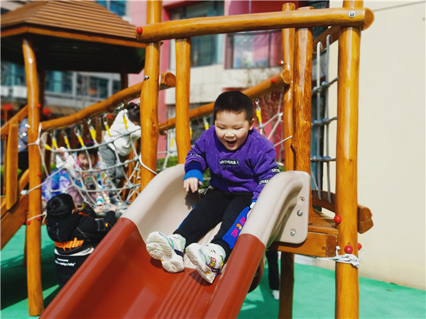 快乐的一天就这样在运动中开始了,孩子们时而钻、时而滚、时而玩攀爬,玩得不亦乐乎,尽情享受着大自然的新鲜空气,在自由快乐中锻炼身体茁壮成长。这种开放式的锻炼,让孩子们不再局限在规定的一方小天地,孩子们可以玩到更多的器具,幼儿园的活动呈现出健康、活泼、向上的氛围,快乐在操场上飞扬!