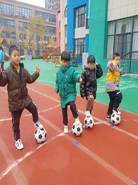 足球运动是一种适合幼儿的很好的体育运动,它不仅能够增强幼儿体质,促进幼儿动作协调发展,还能给幼儿带来欢乐的情绪,提高幼儿不怕困难、坚持不懈的意志品质。2020年12月18日,合肥市庐阳实验幼儿园四里河畔园大四班老师们带领孩子们积极开展了足球活动。