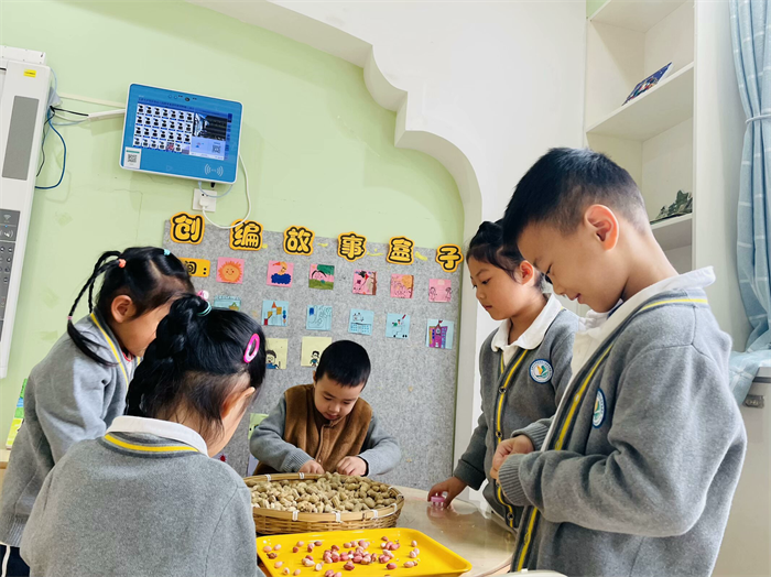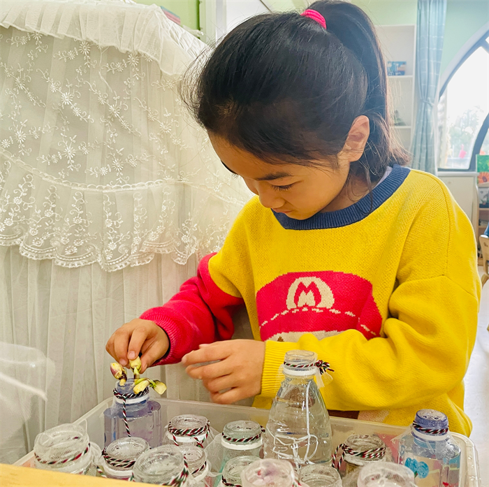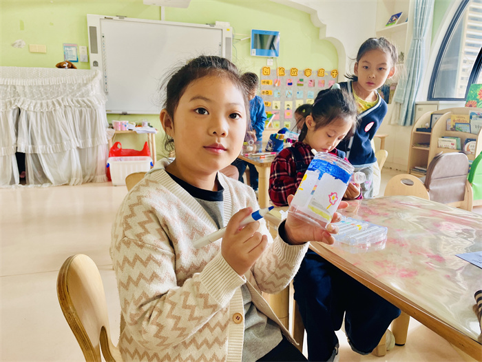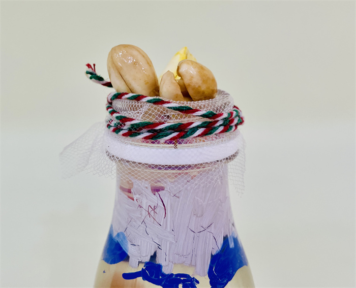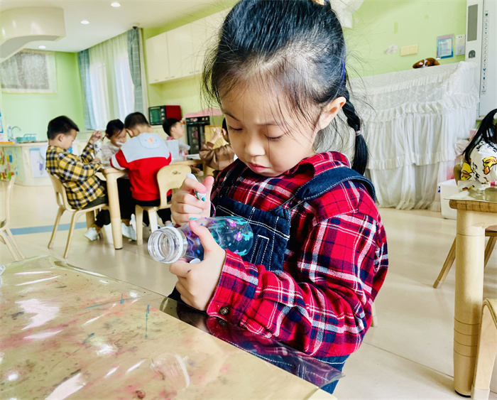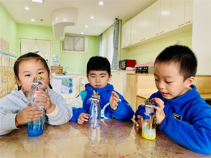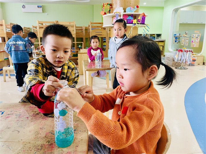 顺顺:“我们合作给花生的“房子”加上滤网,这样花生宝宝就不会掉到瓶底了。”