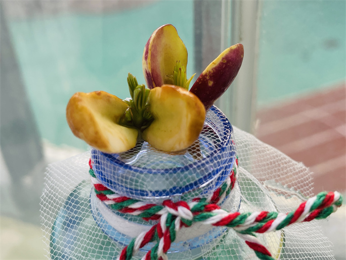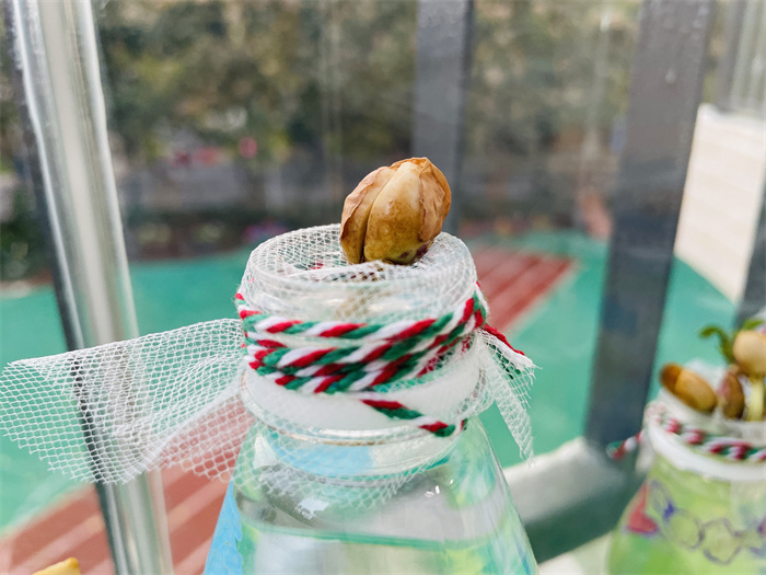 面对这一突发状况,孩子们没有气馁,而是迅速展开了讨论,找出了花生发霉的原因——长时间泡水导致腐烂。凭借之前的养植经验,他们提出了请值日生轮流照顾花生的解决方案。值日生负责检查花生的生长环境,严格控制花生的泡水时间,定时为花生换水,确保水质清洁且水量适宜。