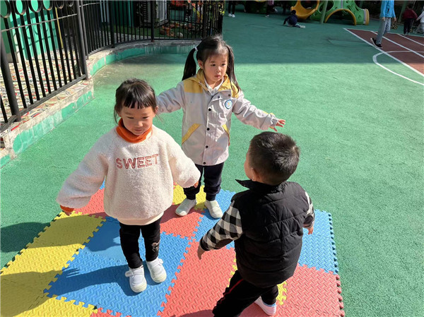 蝴蝶翩翩起舞的美丽身影在孩子们的心里留下了深深的印记。“我也想有这样一对美丽翅膀!”“那我们一起学蝴蝶跳舞吧!”“要先从毛毛虫开始哦!”宝贝们在操场上,在暖暖的阳光下快乐地跳起了蝴蝶舞。