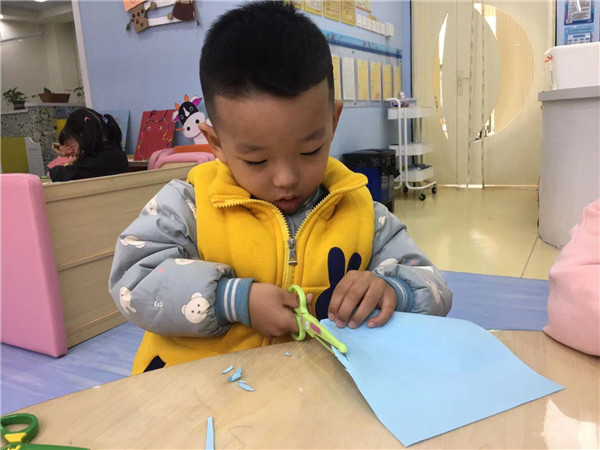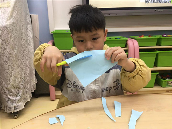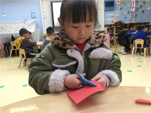 通过运用这些方法,可以很快地让幼儿掌握运用剪刀的正确方法并且乐在其中。由于幼儿年龄小,肌肉力量的发展并不很好,协调性不够,所以,今后在日常生活中我们还要多投入锻炼小肌肉的材料,如:二指捏、三指捏、五指抓、拧、舀、贴等桌面活动,使小肌肉能快速发展,使幼儿运用剪刀能更加灵活自如。