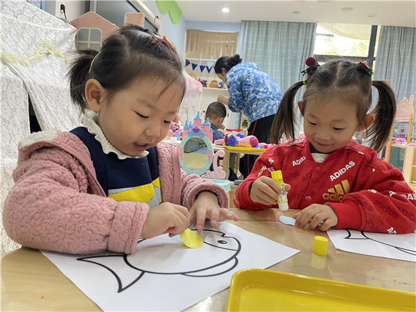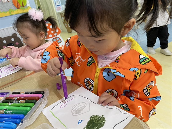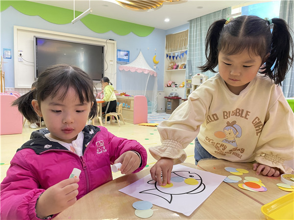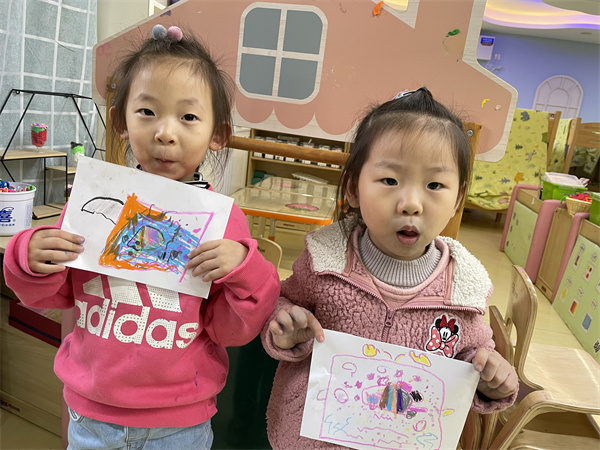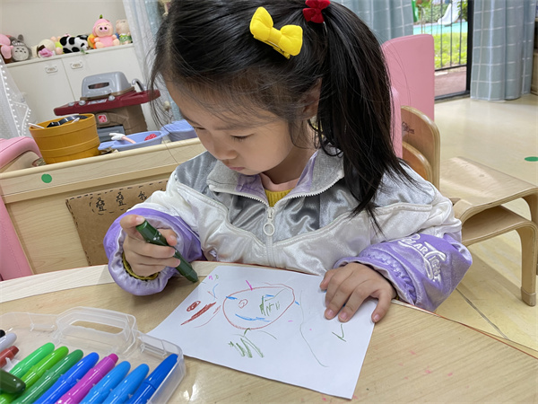 孩子们拿起自己的画笔开始给小金鱼设计新家啦!“小塑料盒太挤了,就让小鱼住在可以跑步的大鱼缸里吧!”“鱼缸里放一点彩色的小石头,小鱼一定会喜欢的。”“我再带一条小鱼过来陪着它,那它就不会孤单啦!”在孩子们齐心协力开动脑筋下,来小三班做客的小金鱼有了温暖的新家还有了自己的好朋友。
