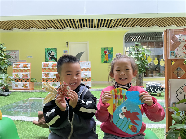 在和小金鱼的相处中,孩子们对于班级里这位特殊朋友的感情越来越深厚了,每天早上来幼儿园最重要的事情就是和它们的金鱼朋友打招呼啦!甚至有小朋友想和小金鱼一起拍一张有爱的合影。可是孩子们也遇到了问题:“小金鱼在水里,我在外面,我又不能把它捞出来,那样它会死掉的。”小钰对于不能和小金鱼一起合影有点不开心,小雨说:“那我们可以做一个手工小金鱼呀!”手工小金鱼可以拿在手里和我们一起和合影呀!”遇到问题我们一点都不担心,因为总会找到解决的办法,在爸爸妈妈的帮助下,宝贝们都有了属于自己的“小金鱼”看,他们正一起拍着合影呐!