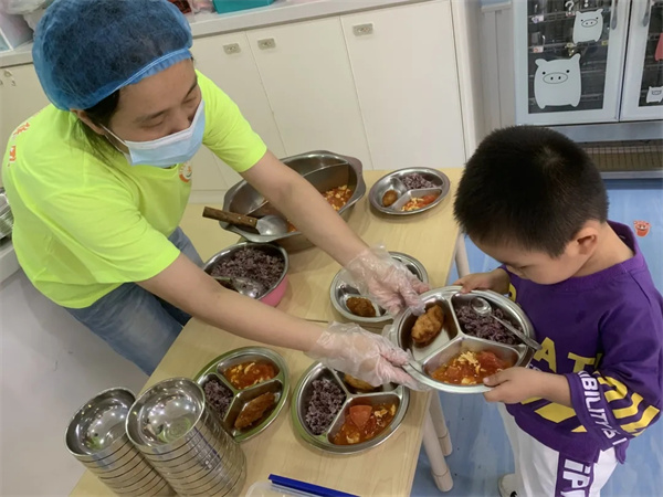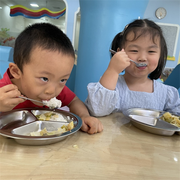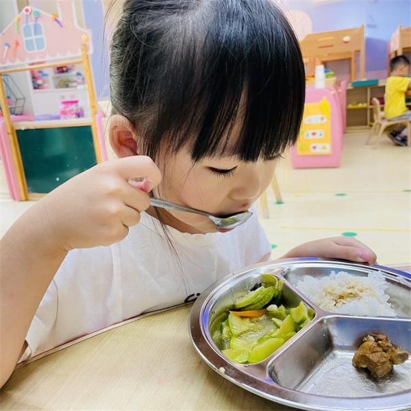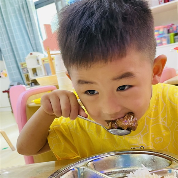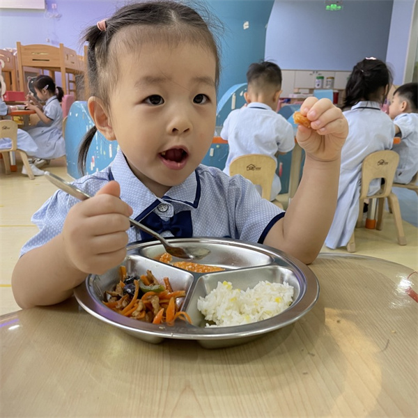 第一次在幼儿园和这么多小伙伴一起品尝幼儿园的美味佳肴,刚开始我总是手忙脚乱,还好老师像妈妈一样照顾我......