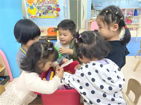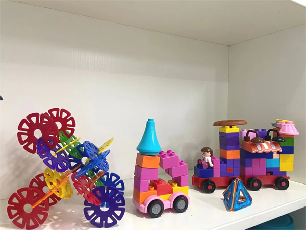 天气变化无常,晴天变成了雨天。游戏转战到室内,户外的小车太大了,教室里放不下。怎么办呢?那我们自己动手制作吧!孩子们在班级区域里寻找各种材料。黏土、积木、磁力片……