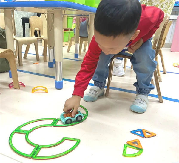教师思考:孩子们是游戏的创造者。遇到困难,把问题抛给孩子。蹲下来倾听他们的想法,他们可能会创设一个新的游戏情境。小四班宝贝们在室内造汽车1.0过程中,参与感十足,在评价与欣赏环节萌发了新的问题,为什么磁力片小车可以跑起来?