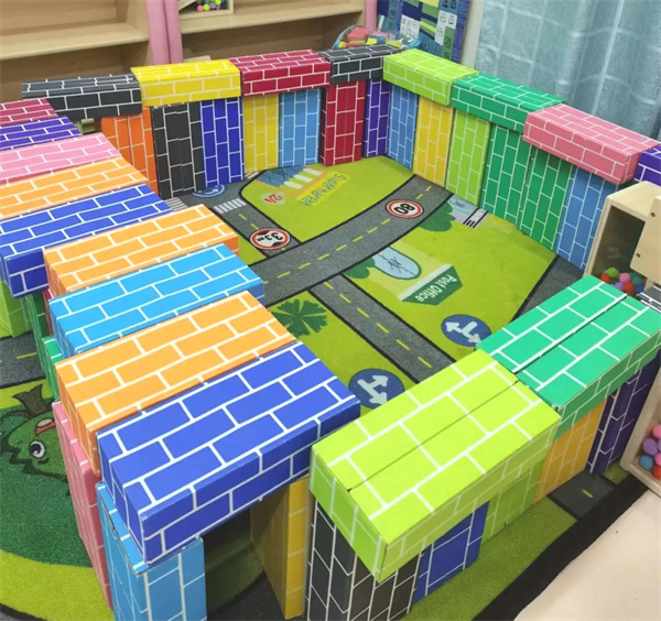 活动效果:在活动中幼儿能以平铺的方式搭建马路,搭建中穿插了不同种材料,通过高低错落完成斜坡、桥洞的搭建,还在路的边缘处做了围挡。