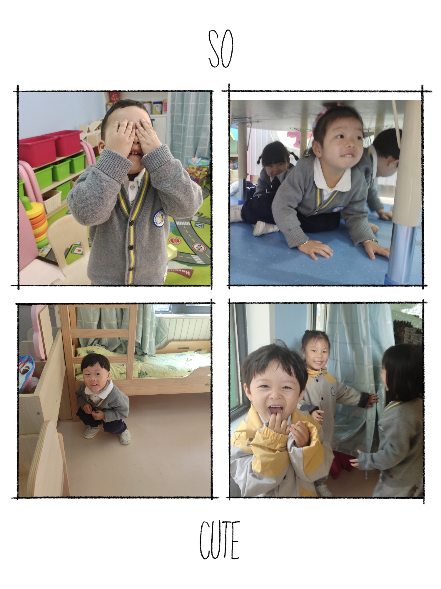 集体活动结束还开展了捉迷藏的游戏。“我躲的真厉害,谁都找不到我”