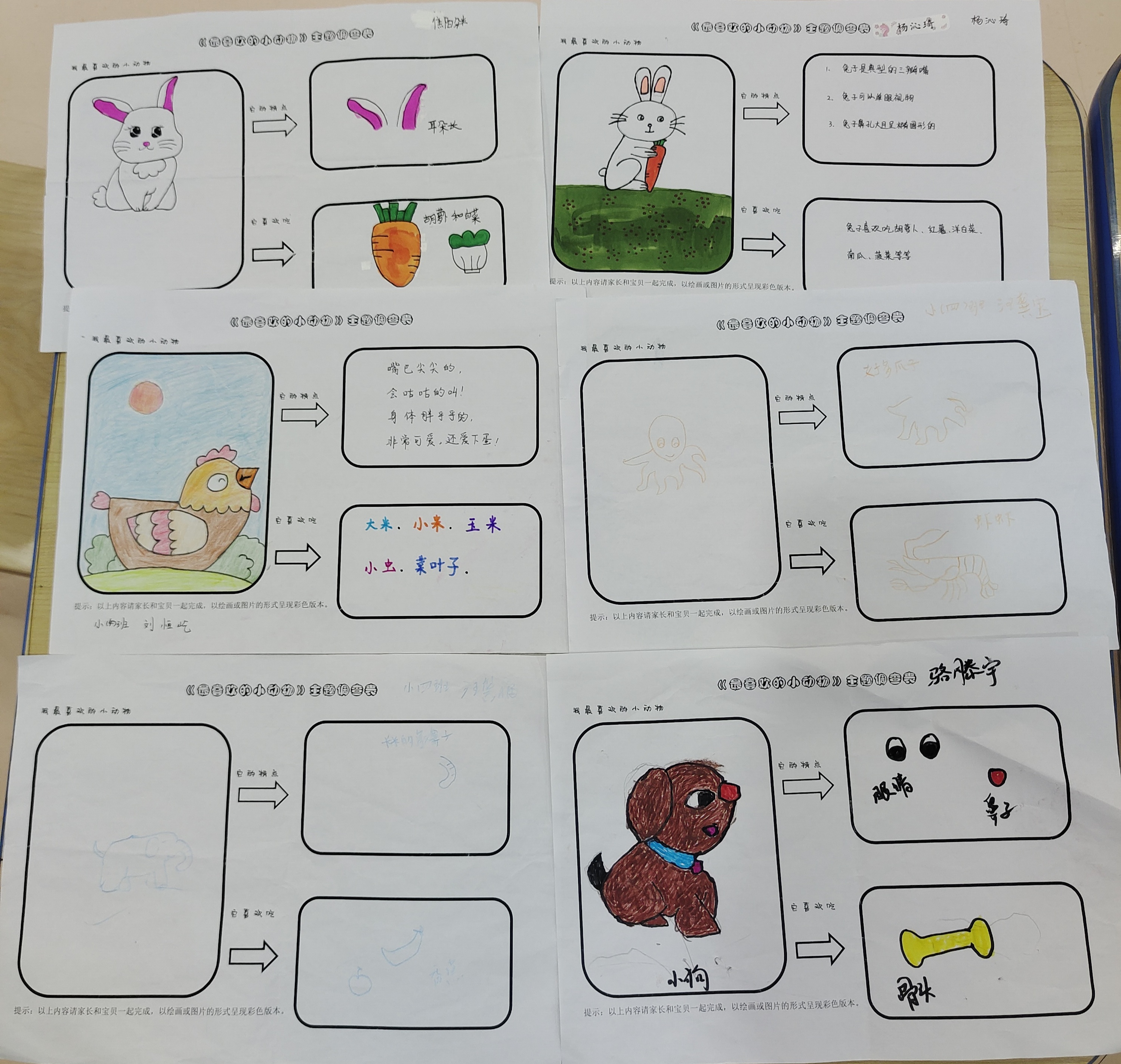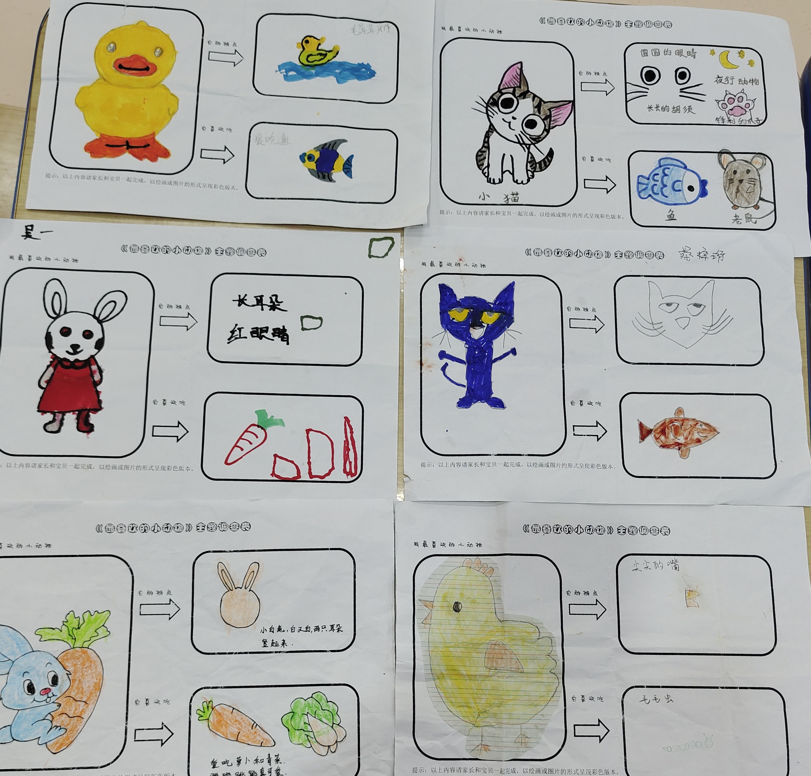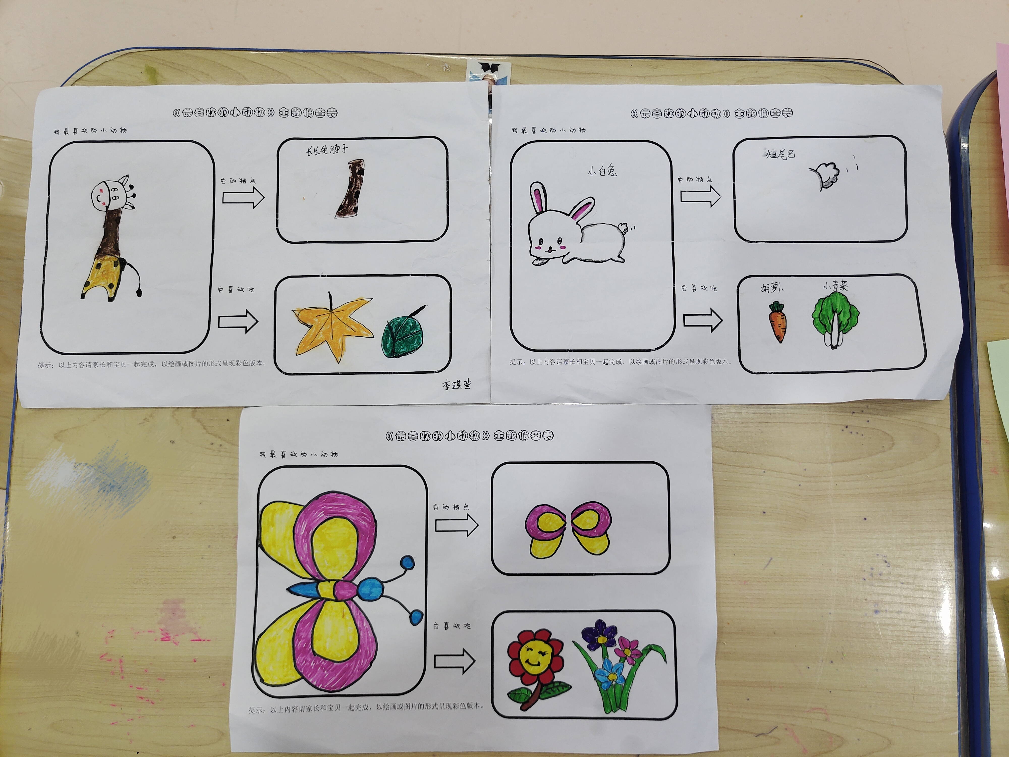 一起看了绘本之后,小朋友了解到了她们的好朋友住在哪里,知道了它们的本领。那小朋友们自己最喜欢什么动物呢?它的特点是什么呢?它最喜欢吃什么呢?关于我最喜欢的动物主题调查表开展了。孩子们认真的和爸爸妈妈一起完成关于最喜欢的动物调查表。一起去看看孩子们最喜欢的动物吧。