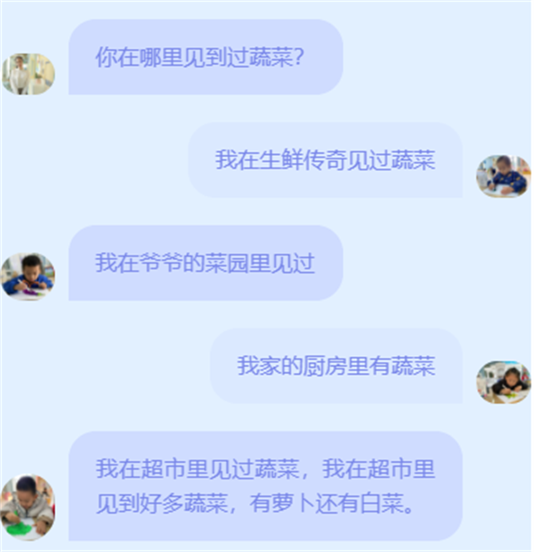 通过观察蔬菜,个别介绍、随机发言等形式,幼儿表达了自己对蔬菜的不同看法,并发展了语言表达能力。