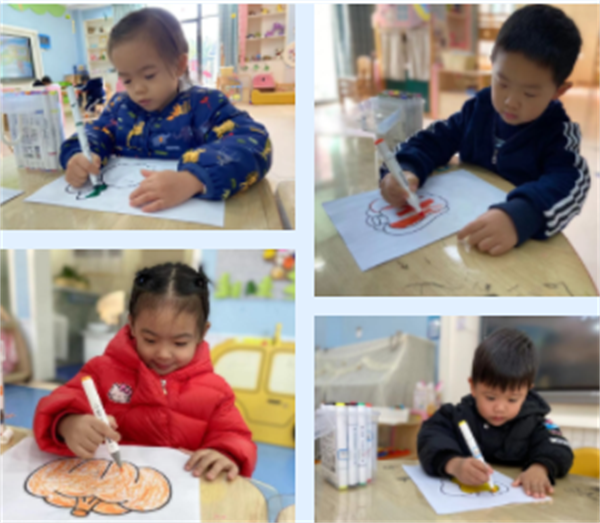 这么有趣的蔬菜,孩子们都想把它记录下来,于是,我们想到了用画笔来画一画、给蔬菜穿上新衣,留在纸上,拼成一幅奇妙的画。跟着我们的镜头一起去看一看吧!