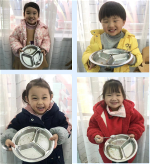 瞧!宝贝用实际行动践行“光盘”精神,他们在幼儿园里把饭菜吃得干干净净,争做光盘小达人!
