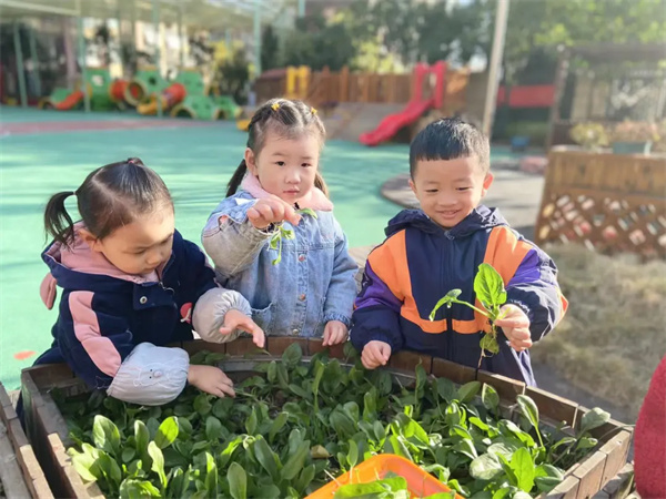 幼儿园的种植园里蔬菜都成熟了。为了让孩子们感受四季的变化,亲手触摸大自然,体会丰收的喜悦,在老师的带领下,孩子们进行了一次有趣的亲近自然、快乐采摘的体验活动。不仅让幼儿学习了摘菜蔬菜的本领,让幼儿体验到了劳动的乐趣、收获的喜悦,同时促进了幼儿珍惜劳动成果的情感体验。