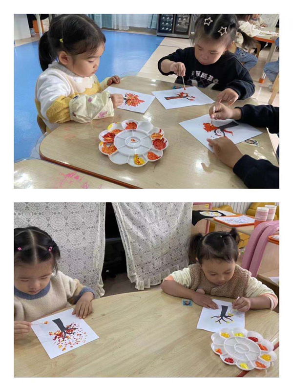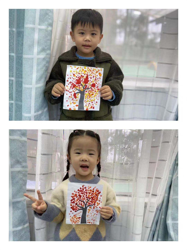 孩子们发挥着自己的想象力,用灵巧的小手拿起棉签蘸上颜料,把秋天搬到我们的画纸上。看,如诗如画的秋天,悄然跃于小朋友的纸上,秋天的大树就这样诞生了,就像施了魔法一样,也许有魔法的是这样的一群孩子吧,他们每个人都给树叶施了魔法:给树叶变出了彩色的衣服,给树叶留下特别的影子,让树叶变成一首诗、一幅画……