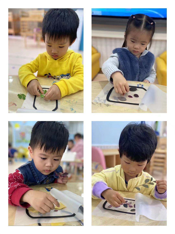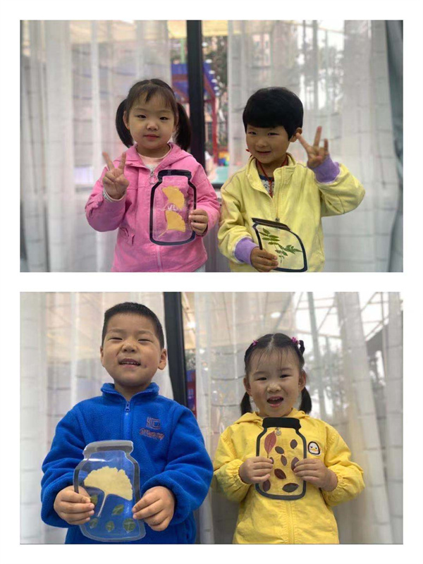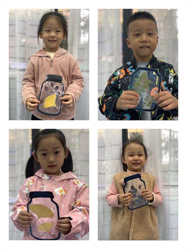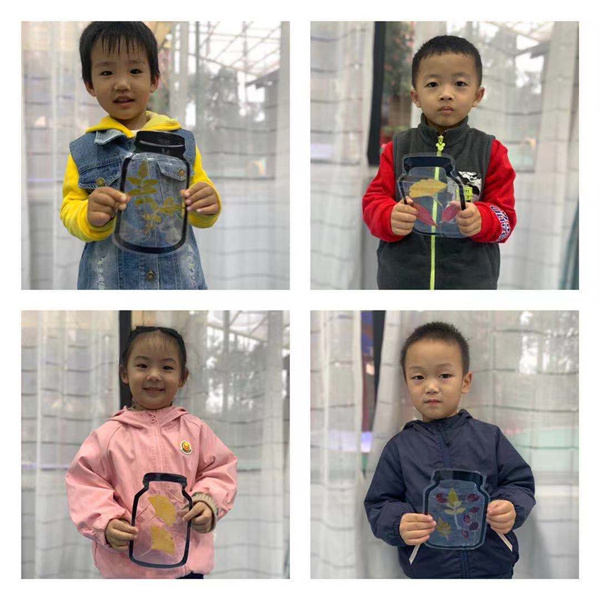 为了留住秋天的精灵,小一班的孩子们思考怎么才能把树叶装进瓶子里呢?于是我们开始制作“树叶标本”好看的树叶标本做好了,快来和我们一起欣赏吧!孩子们用小小的树叶创作出了一件件充满童趣、风格各异的艺术品。树叶标本创意作品不仅培养了孩子们感知自然、观察生活、自主动手的能力,了解了秋天的变化,丰富了对树叶的认识,培养了他们热爱自然、热爱生活、热爱艺术的情感!