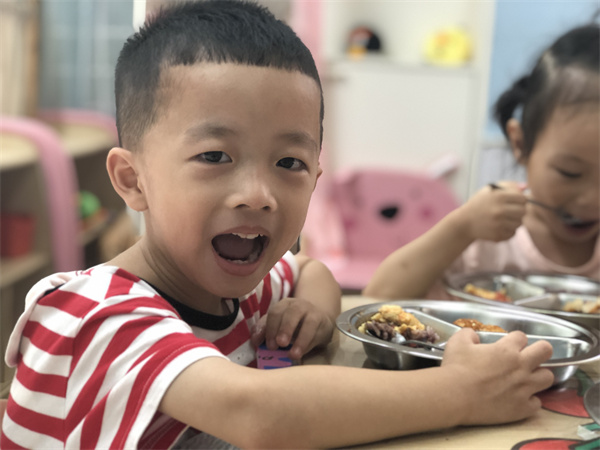 幼儿园的餐点品种丰富,营养全面,让孩子们在享受快乐时光的同时也能享受到专属于他们的营养美食。第一次独自在陌生的环境里进餐,担心宝贝们不吃饭,老师便一口一口细心地给他们喂,在老师的耐心安抚下,宝贝们还是喜欢上了吃幼儿园香喷喷的饭菜了。