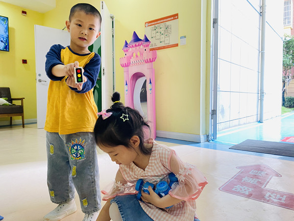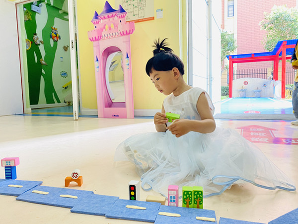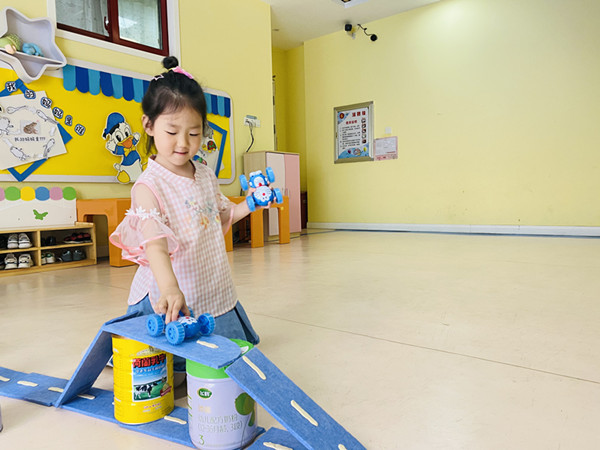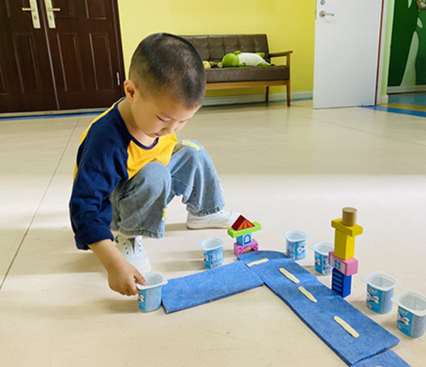活动中,幼儿操作各种材料,通过时而围合、时而架空、时而观察、时而探讨,在巧手慧心的摆弄下摇身一变,拼搭出“热闹的马路”,千姿百态,创意无限。在建构自主游戏中,每位幼儿都可以在自己的梦想王国中展开想象力的翅膀。