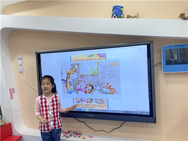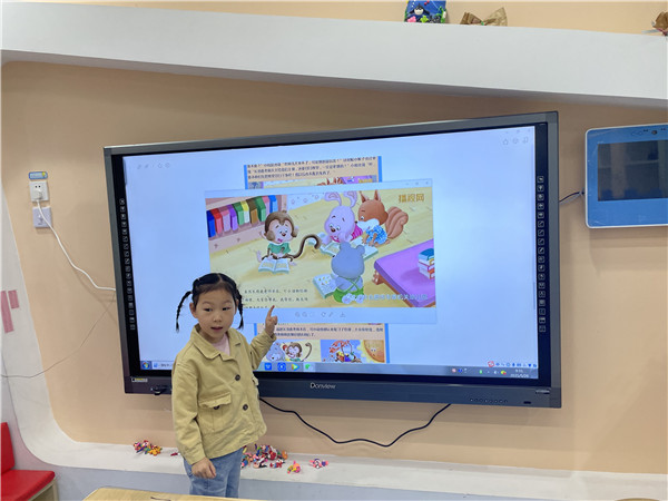 活动前期,根据幼儿的游戏愿望,通过集体投票的方式甄选出适合本班幼儿表演的故事内容,充分利用晨间活动、餐前等待时间鼓励孩子们用自己的语言讲述《长颈鹿老师》的故事,帮助孩子熟悉故事内容,丰富角色的对话,在孩子们的你一言我一语的交流中剧本就新鲜出炉啦!