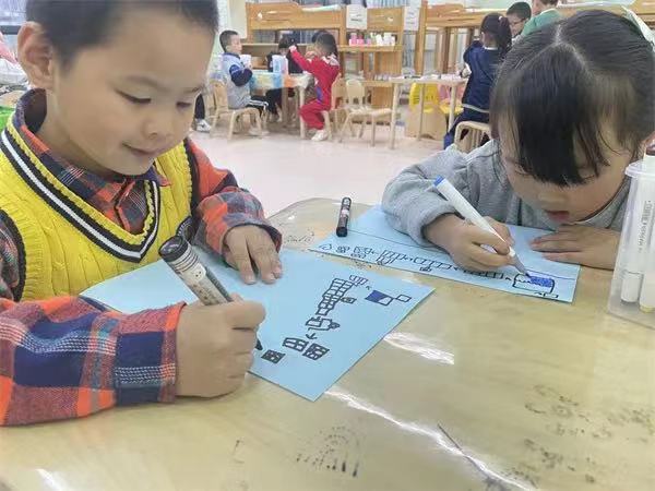 遇到困难时,孩子们主动寻找答案,并在不断尝试解决问题,发现作品不同时,孩子们通过观察、比较分析,积极探索操作上的不同,并大胆表达想法,随着一次次游戏的推进,幼儿的游戏经验也不断丰富,深入游戏的行为和主动解决问题的能力不断在提升。