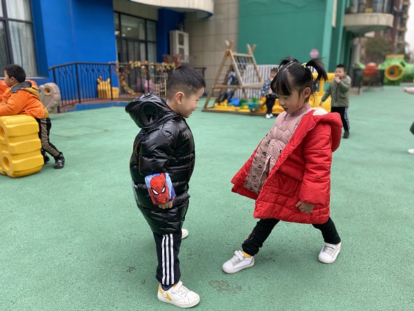 随着冬季的到来,孩子们的身体面临很大的考验,为了使孩子们适应低温环境,提高幼儿自身免疫力,合肥市庐阳实验幼儿园教育集团四里河畔园的老师除了带领幼儿做早操外,还开展了丰富多彩的户外活动。冬季参加户外活动,不仅能锻炼身体,增强体质,而且能锻炼幼儿不怕严寒的坚强意志,提高身体的抗寒能力,防止发生各种疾病。尤其对正在长身体的小朋友来说,多参加户外锻炼更为重要。2021年1月28日,合肥市庐阳实验幼儿园教育集团四里河畔园中三班幼儿在老师的带领下,开展了“剪刀石头布,游戏乐无穷”户外趣味游戏活动。