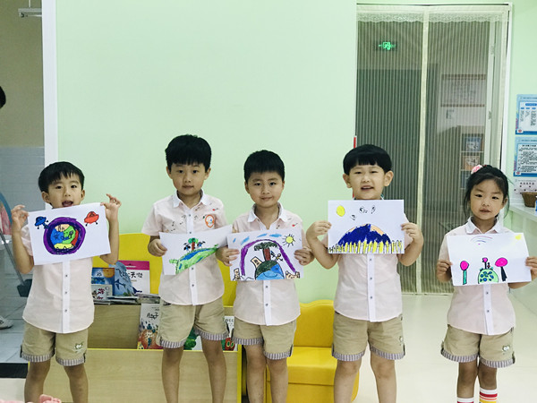 大班教师以生动的形式向孩子们介绍了“国际保护臭氧层日”后,开展了以“爱护蓝天,保护臭氧层”为主题的宣传绘画活动。通过制作宣传画,提高了幼儿对美好环境的期望。