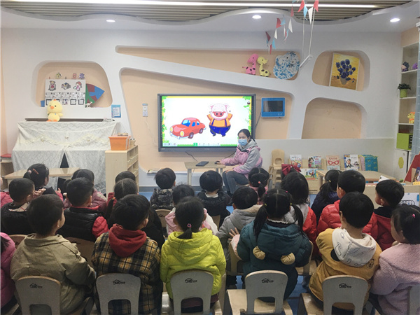 活动开始,小朋友们通过观看充满童趣的短片《小猪过马路》,对交通标志产生了极大的兴趣,之后,教师结合图片带领幼儿认识有关的交通安全标志,引导孩子们感知日常生活中行走、过马路、乘车时应如何根据交通标志来进行。最后,老师带领孩子们进行了“我指你说”的游戏,孩子们纷纷跃跃欲试,在轻松愉快的氛围中巩固认识了交通安全标志。