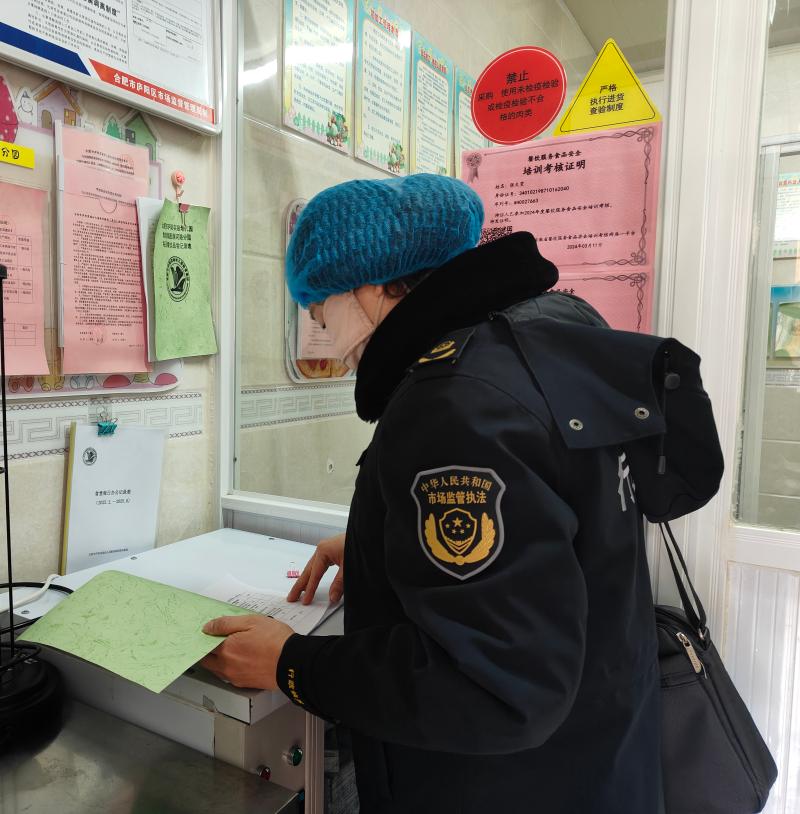 检查人员对照《庐阳区春季开学学校食品安全检查表》,走进粗加工间、切配间、备餐间、操作间,实地查看设施设备、原料采购、大宗食品公示、餐饮具清洗消毒等食品安全关键环节。重点对食品留样进行检查,询问当日留样餐品的克数、食品存储、进货查验等,砌牢食品安全防控墙,织密食品安全防护网。