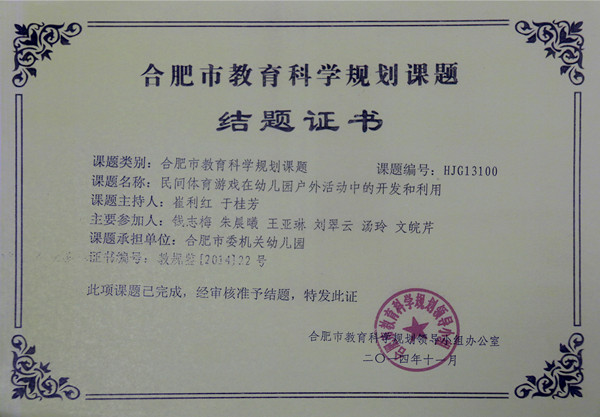 国家级子课题:合肥市幼儿园...