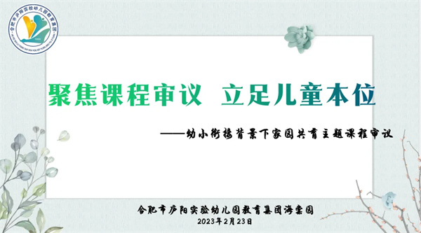 幼小衔接是指幼儿园和小学的衔接,是幼儿成长过程中所面临的一个关键时期,而家园之间积极、良好的双向沟通与配合才是做好幼小衔接的关键。2023年2月23日,合肥市庐阳实验幼儿园教育集团海棠园立足市级课题《幼小衔接背景下家园共育的实践研究》,深度剖析、借鉴学习、内化融合,围绕“聚焦课题审议 立足儿童本位”开展主题课程审议教研。