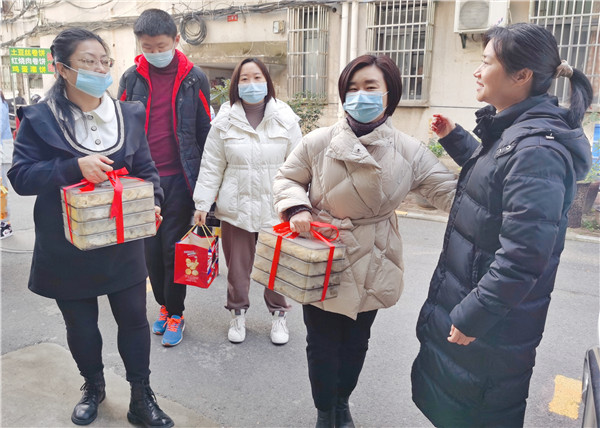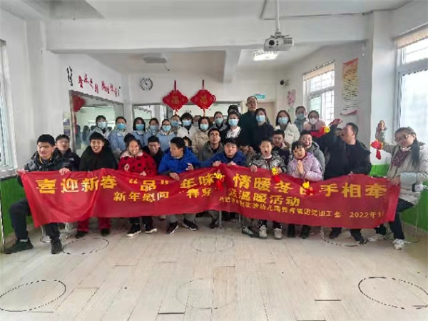 “春芽阳光家园”与合肥市庐阳实验幼儿园教育集团携手走过了十载时光,十年如一日地做着不懈努力。值此新春佳节来临之际,为了传递正能量,弘扬真善美,2022年元月12日,合肥市庐阳实验幼儿园教育集团园长王晓文、工会副主席朱新华、团支部书记陈晨、各园执行负责、党团工会部分教师凝聚在一起,组织开展“喜迎新春‘品’年味 情暖冬日手相牵——2022年党团工会迎新年送温暖活动,向“春芽阳光家园”送去温暖和祝福。