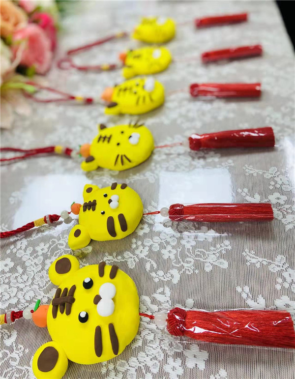 带着对新年的期盼,老师们也巧手制作了黏土老虎挂件,虎虎生威,借助平安吉祥的老虎挂件,寄托人们对美好平安幸福生活的向往与追求。