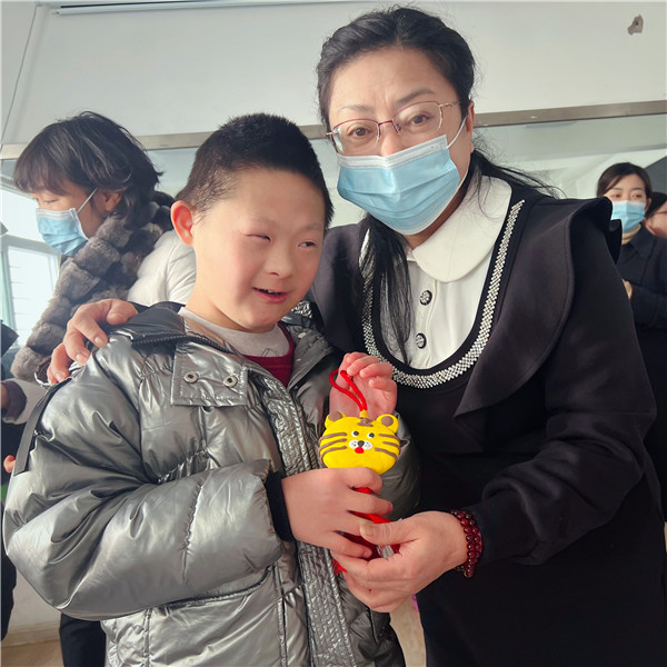 随后,大家将精心准备的饺子、花卷、烧卖等美味面点及生活所需爱心物资赠送给“春芽阳光家园”的孩子们,在这个寒冷的冬天送上一份温暖,一份关怀。一件件有寓意的新年老虎挂件,象征着老师和孩子们在新的一年平平安安、心想事成、没有烦恼、大吉大利。孩子们收到以后,脸上洋溢出灿烂的笑容。教室里充满了爱的气息,温暖的画面感人至深。