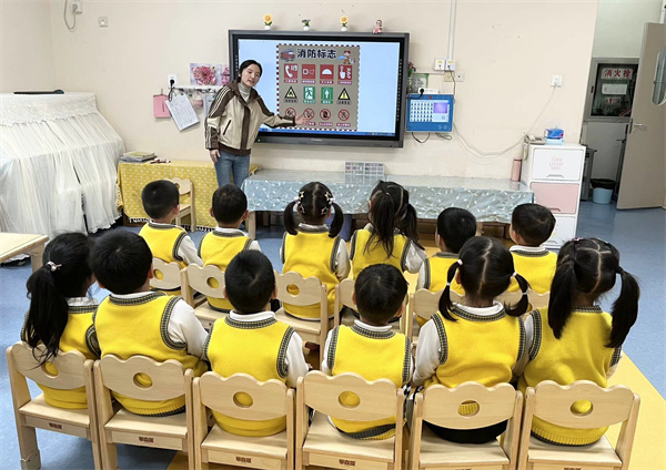 中班孩子们在教师的引导下认识消防标志,让他们认识到什么是安全出口,什么是疏散的方向,哪些东西不能玩,哪些东西是危险品。