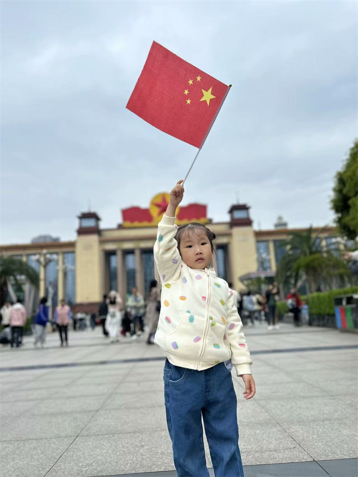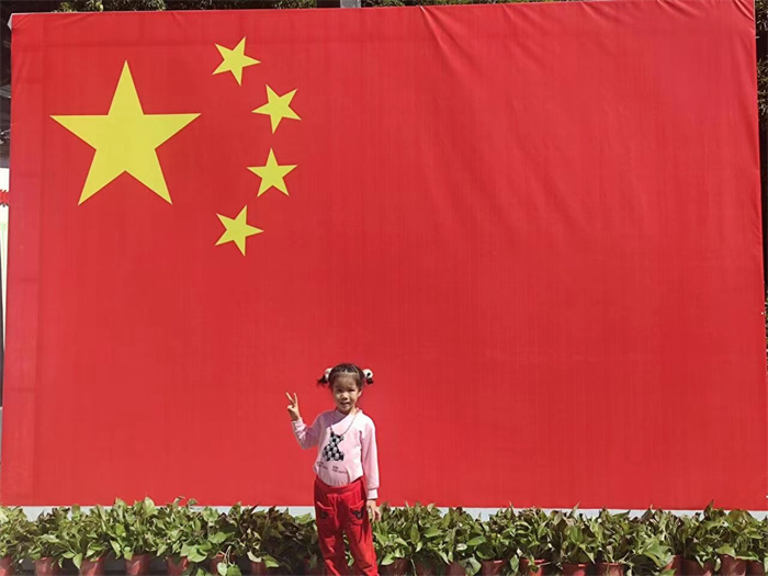 有一种红叫“中国红”,有一种表白叫“我爱你中国”,有一种画面叫“我和国旗合个影”。孩子们在鲜红旗帜的映衬下,洋溢着自豪与喜悦,绽放着幸福与光彩的笑脸映照出了他们对祖国最真挚的热爱和最衷心的祝愿!