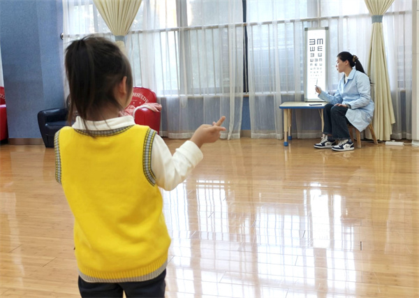 幼儿的视力处于一个动态发育的过程,定期进行视力筛查可以早期发现幼儿是否有视力异常的问题,发现问题及时干预治疗,可以有效促进视力功能的良好发育。在检查过程中,中大班教师引导幼儿仔细观察视力表,保健教师提醒幼儿要科学用眼,合理饮食,多看绿色和远处,让眼睛得到适当的休息,引导幼儿养成科学用眼好习惯。