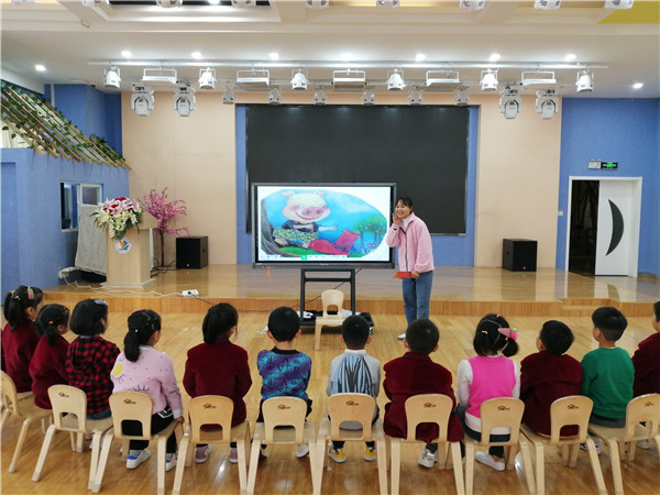 本次活动的主要内容为观摩胡军丽老师、赵灵敏老师的语言活动《小猪和靴子》公开课展示,并组织全体教师针对活动进行交流研讨,探讨集体活动中的有效互动。在活动前期,全体共同研读故事、探讨故事线索,在庐实幼教学总督毕大华主任的指导下理清故事的逻辑,结合《3-6岁儿童学习与发展指南》语言领域目标,进行了教案设计。