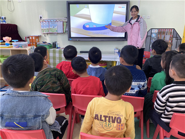 为营造推普环境,形成广泛的推普意识,幼儿园悬挂推普标语、电子屏显示推普宣传标语、创设语言绘本区角环境等,营造良好的语言文字氛围。并通过周一国旗下讲话向全体教师和幼儿传播了推广普通话及说好普通话的意义,从而潜移默化的让孩子们懂得:“学好普通话,才能没有障碍的交流。”